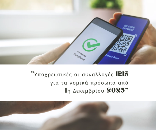 Υποχρεωτικές οι συναλλαγές IRIS για τα νομικά πρόσωπα από 1η Δεκεμβρίου 2025